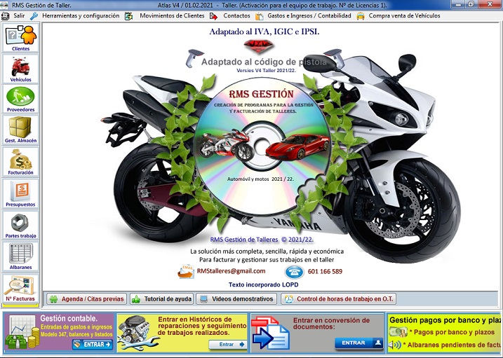 El programa más completo, económico y sencillo de utilizar para su taller mecánico de Motos en España.
